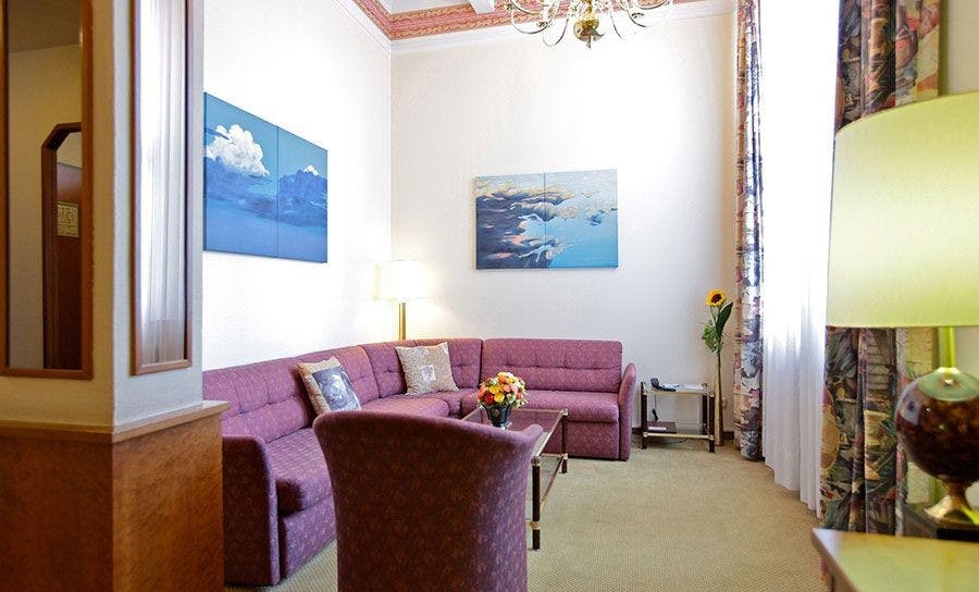 Großzügige Junior-Suiten mit optisch getrenntem Schlaf- und Wohnbereich mit einer gemütlichen Sitzecke. Betten mit High Comfort Matratzen 2x 100cmx200cm oder 160cm x 200 cm Stilvoll ausgewählte, harmonisch abgestimmte Dekorationen schaffen eine behagliche Atmosphäre. Das Badezimmer ist mit einer Badewanne ausgestattet. Klimaanlage kostenfreies WLAN Schreibtisch mit viel Platz Safe internationale TV-Kanäle gefüllte Minibar (Inhalt gegen Bezahlung) Welcome Tray mit Kaffemaschine, Wasserkocher, gratis Tee/Kaffee