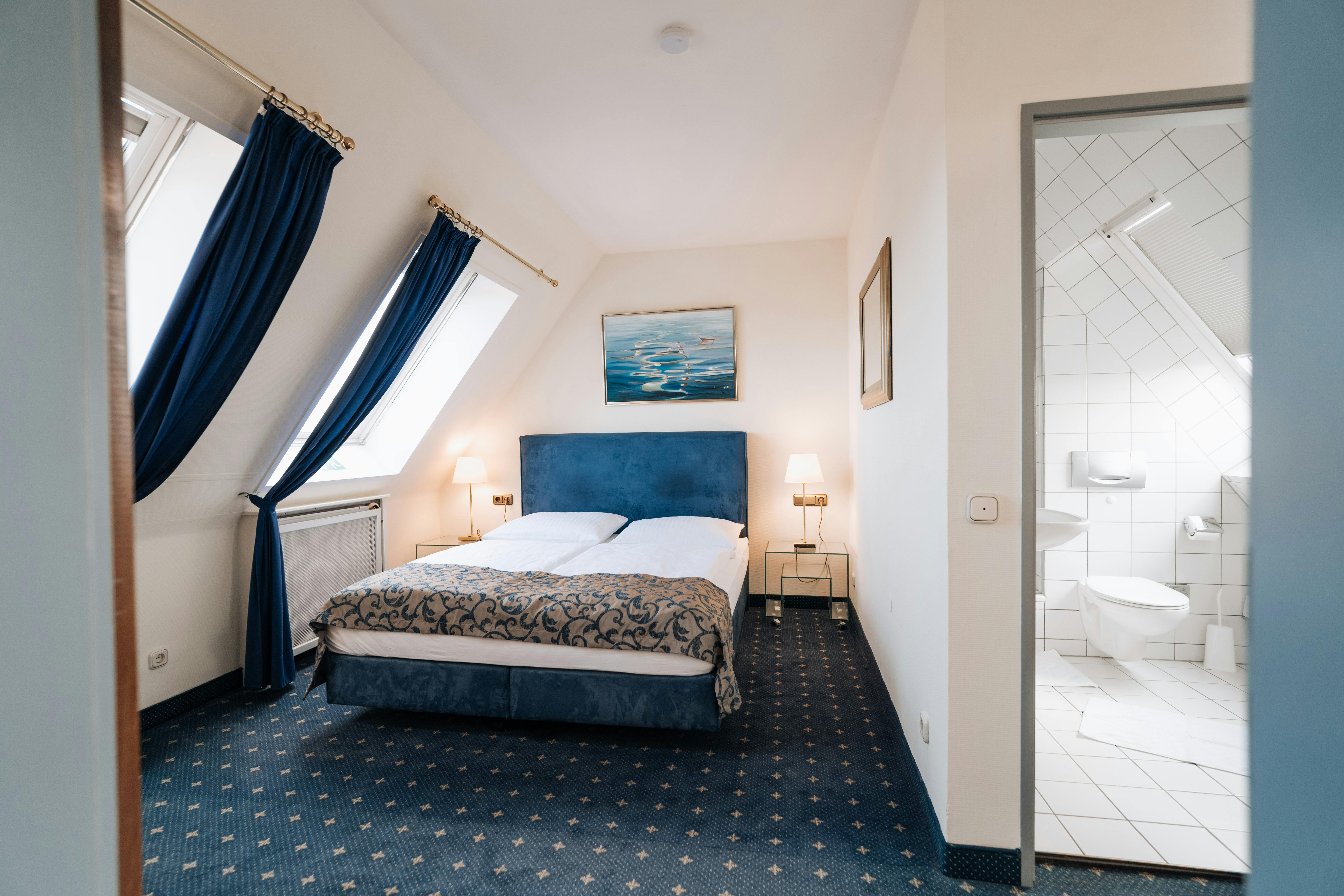 very spacious double room (bed 160cm x 200cm) or twin room (bed 2x 100cm x 200cm) Rhine view air conditioning free WiFi desk with plenty of space safe international TV channels stocked minibar (contents against payment) welcome tray with kettle, free tea/coffee