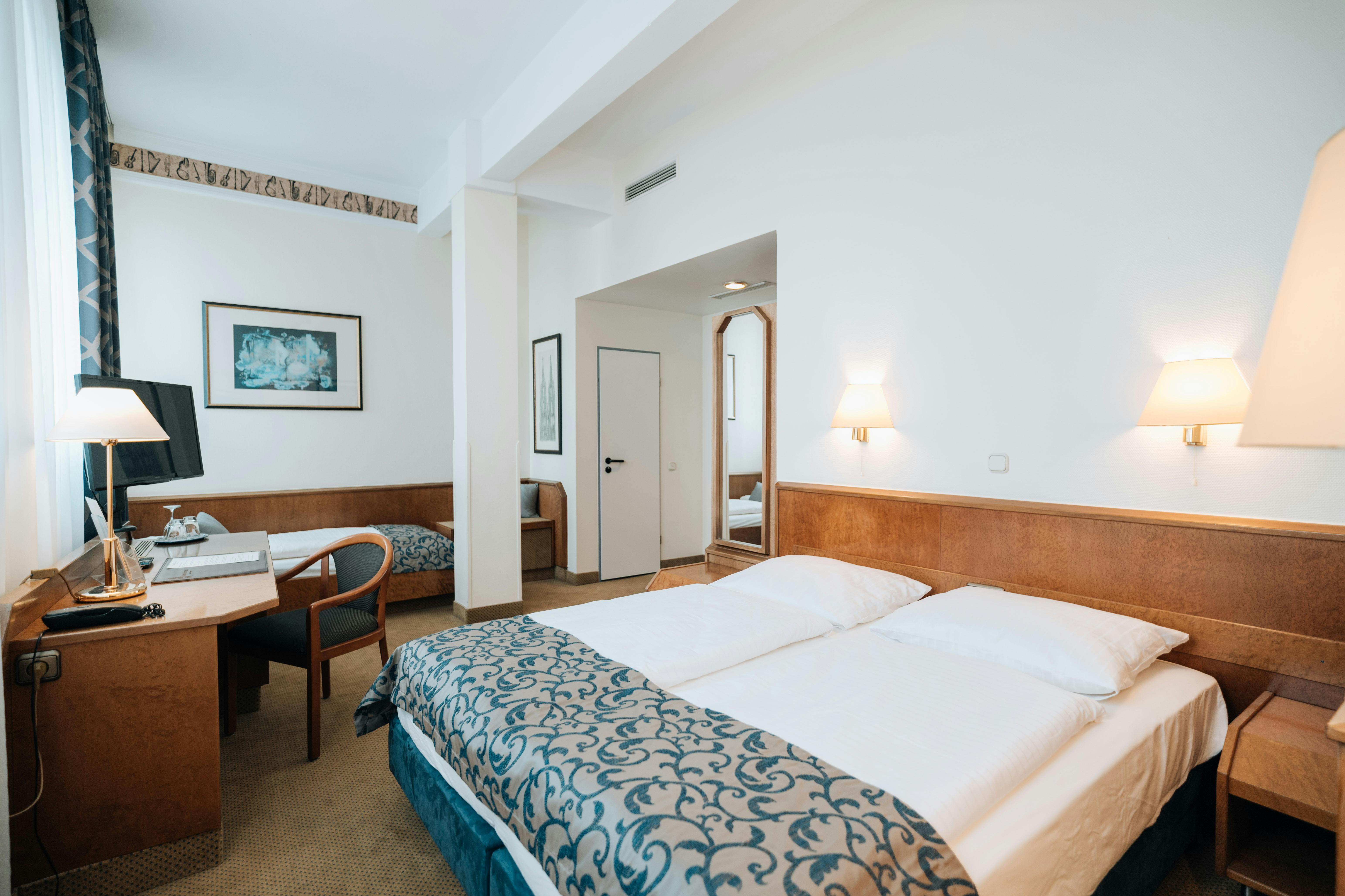 spacious triple room with 3x 100cm x 200cm view of the Rhine air conditioning free WiFi desk with plenty of space safe international TV channels stocked minibar (contents for a fee) welcome tray with kettle, free tea/coffee